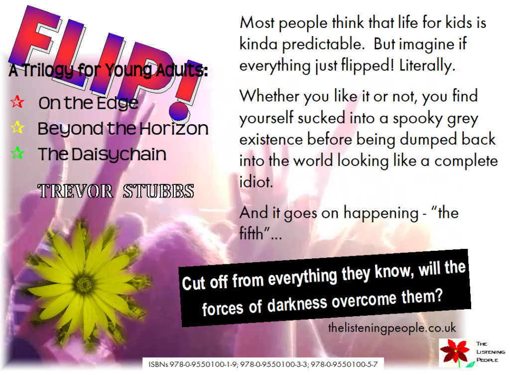 A trilogy for young adults. Forced to leave home, school, friends and all that is familiar to them, five teenagers – 5D survivors – become guinea-pigs in a mad professor’s clinic. But it gets worse! Is the Winterford Clinic all that it seems? Where does the American entrepreneur come in? And why are so many people wearing daisies?